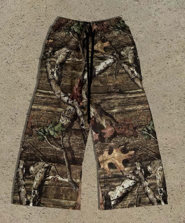 Vintage Tree Camouflage Print Casual Wide Leg Pants